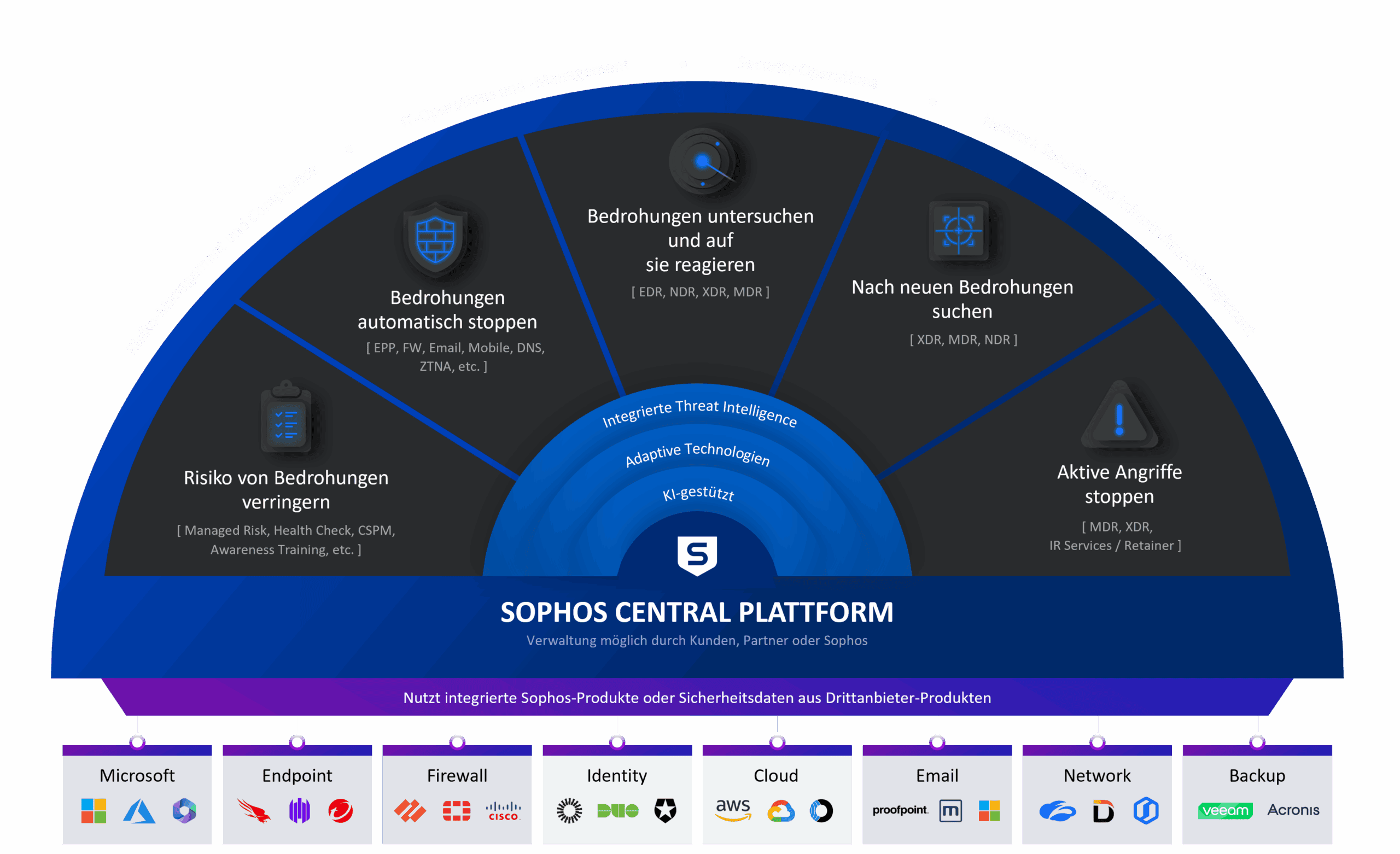 - Sophos-Lösungen, wie z. B. Endpoint-, Firewall-, Cloud- und Email-Protection
